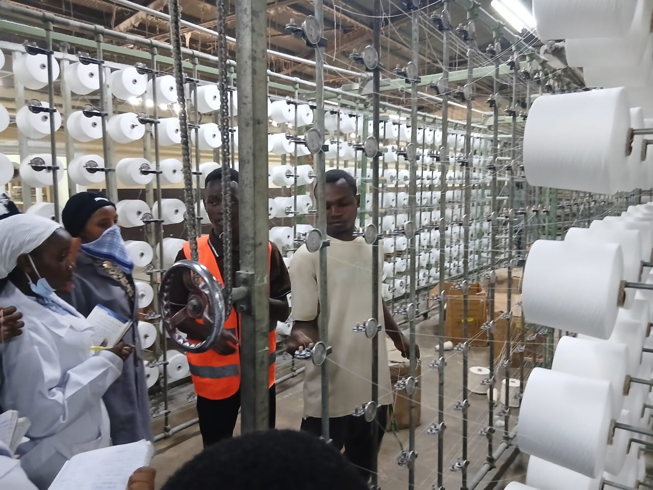 Wanafunzi wakielezwa namna ya kuzalisha vitambaa kutokea kwenye nyuzi zinazozalishwa kiwandani