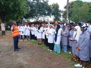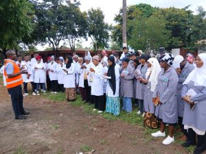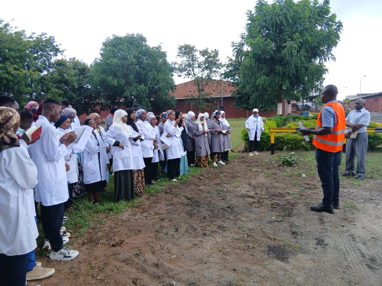 Mwezeshaji wa kiwandani akiwaelimisha wanafunzi mbinu mbali mbali juu za kulinda usalama wa mazingira na wafanyakazi hapa kiwandani.